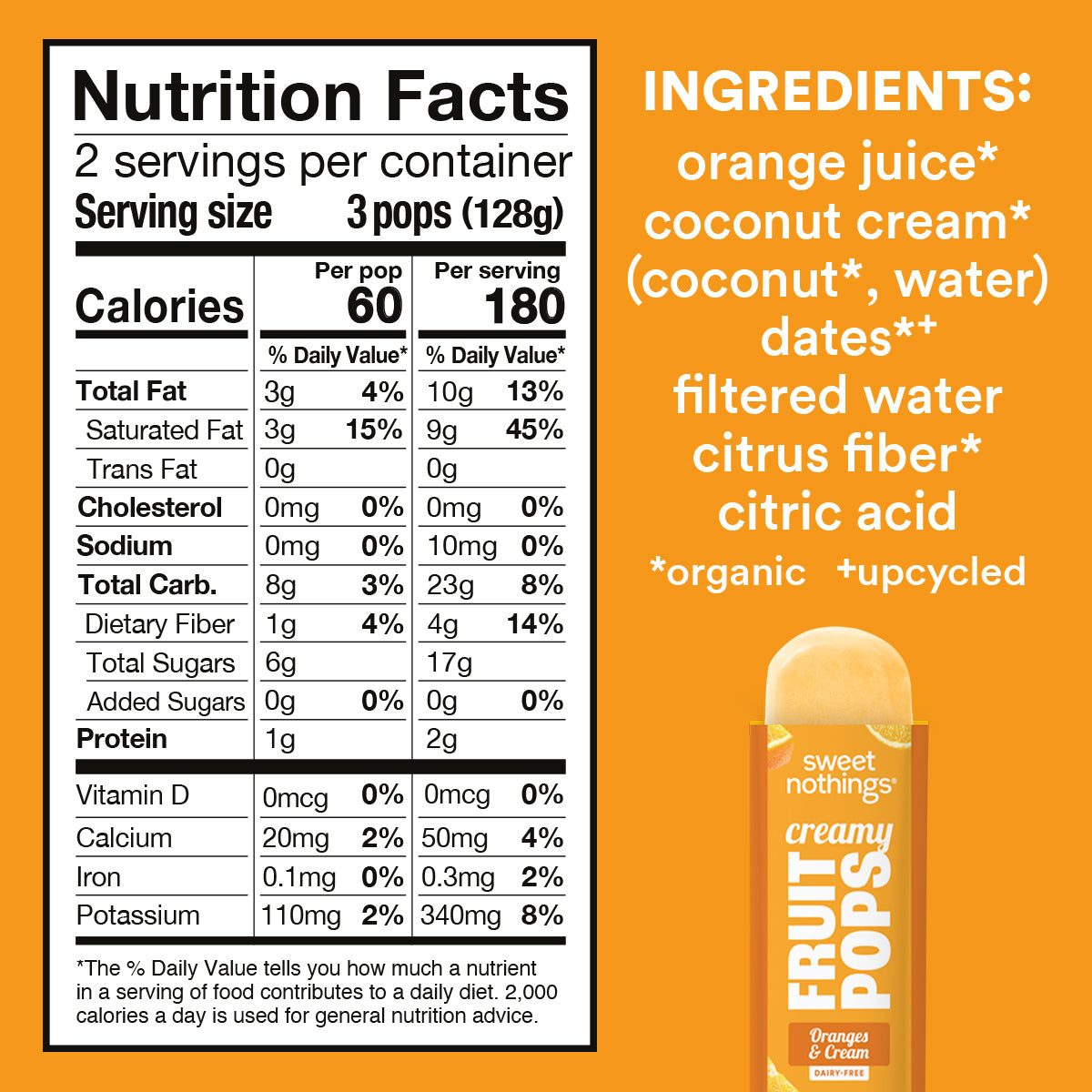 Catch a little endless summer in every pop. Juicy, sun-ripened oranges meet light coconut cream for a flavor that’s bright, creamy, and ready to enjoy anytime. Made with carefully selected ingredients and no added sugar or artificial anything, Oranges & Cream is a sunny, good-for-you treat that feels indulgent. Six pops per pack mean snacking, sharing, or savoring vibrant flavor is easier than ever — because summer doesn’t have to end.