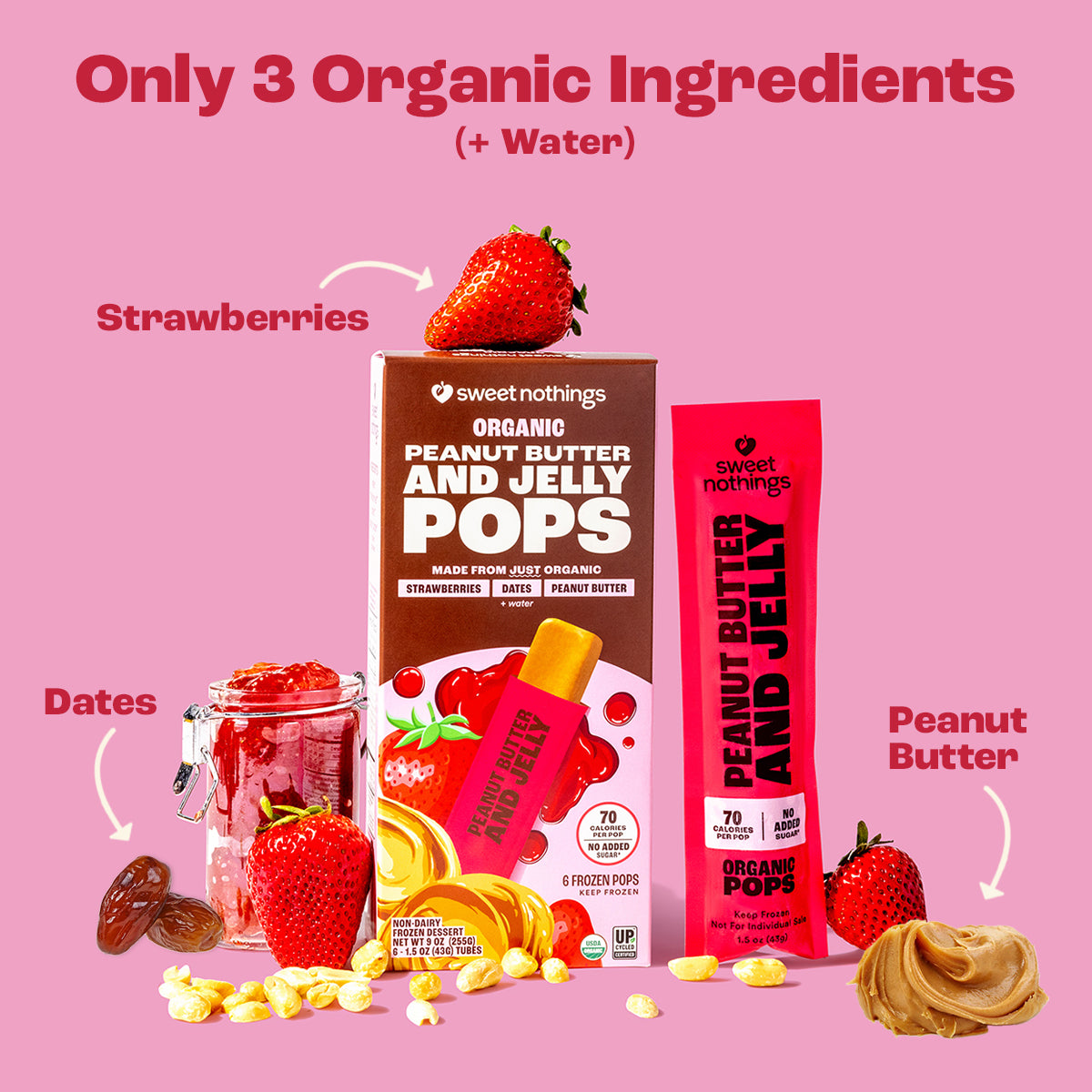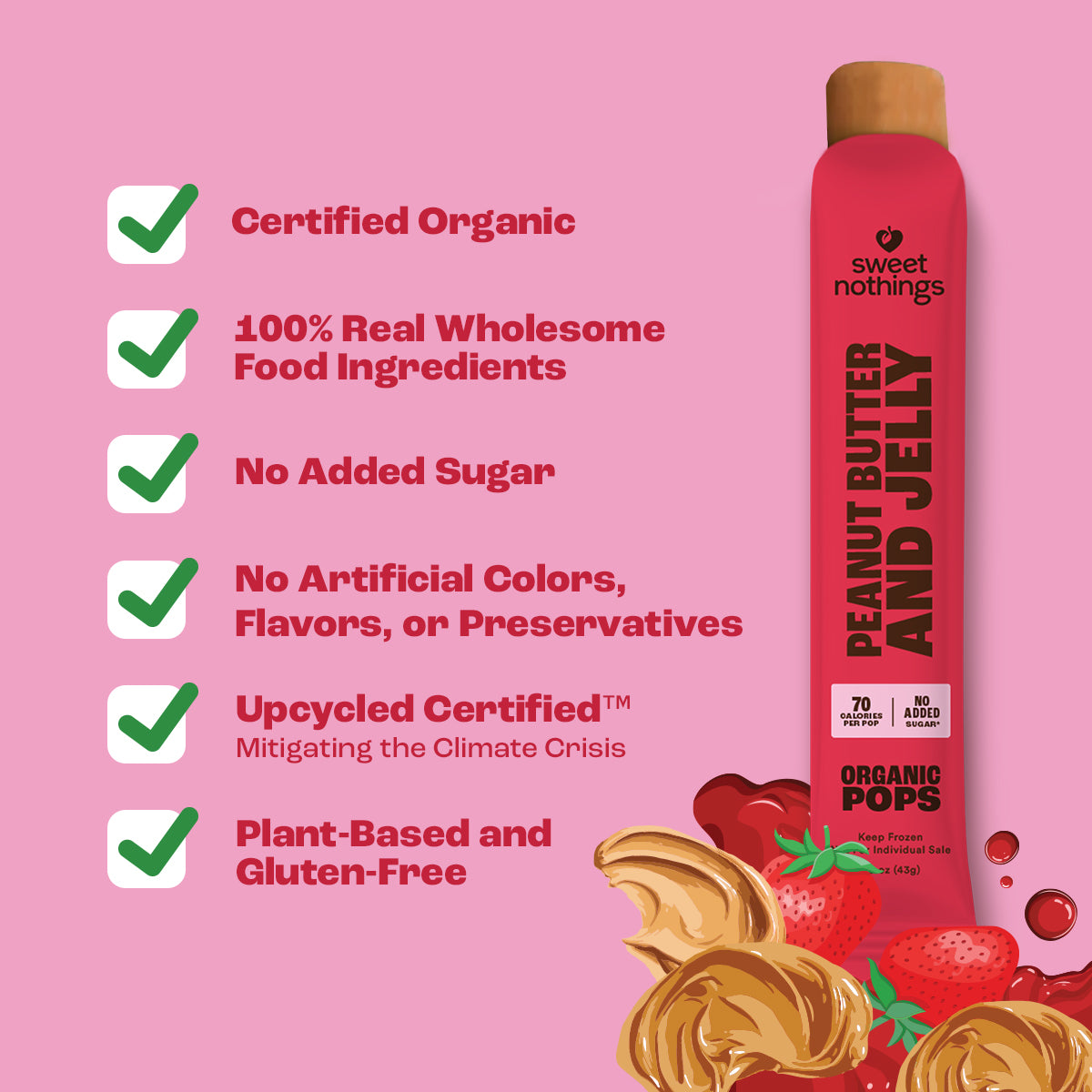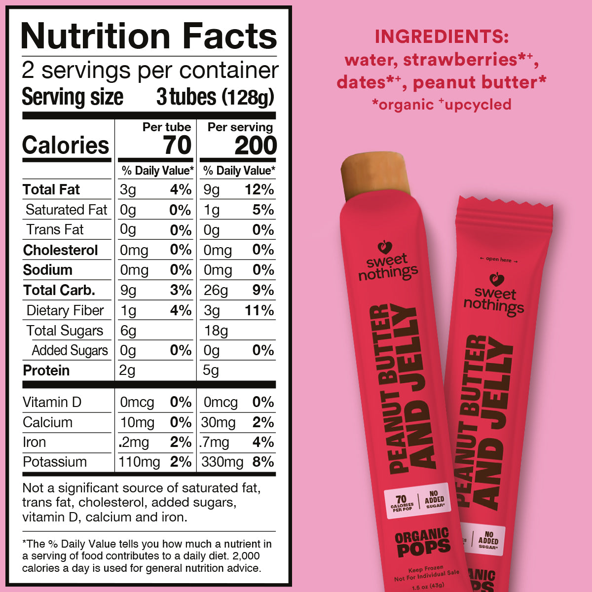 Our Peanut Butter and Jelly Dessert Pops flavor is a delicious combination of organic, real ingredients! These Dessert Pops come in six pre-blended 1.5 oz. tubes of all-natural nutrition with zero added sugar. They are naturally sweet and perfectly portable.