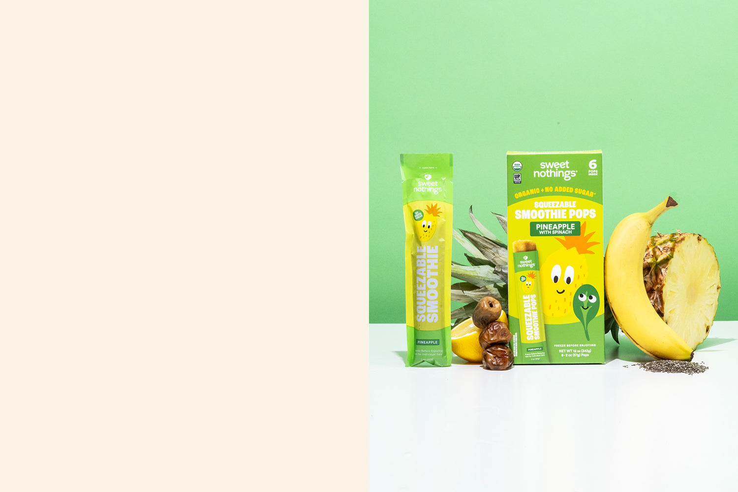 Pineapple Spinach Squeezable Smoothie Pops are a delicious blend of sweet and tart organic fruits, veggies, and seeds. These Squeezable Smoothies come in six pre-blended pops of all-natural nutrition with zero added sugar and are made from real, recognizable ingredients.
