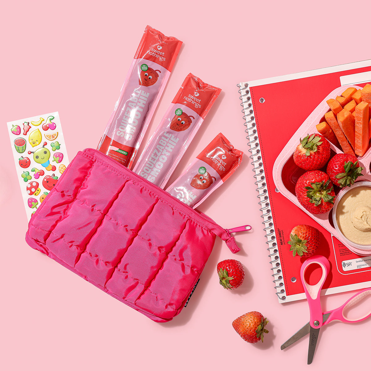 Our Strawberry Beet Squeezable Smoothie Pops flavor is a delicious and wholesome combination of organic fruits, veggies, and seeds! These Squeezable Smoothies come in six pre-blended pops of all-natural nutrition with zero added sugar and are made from real, recognizable ingredients.