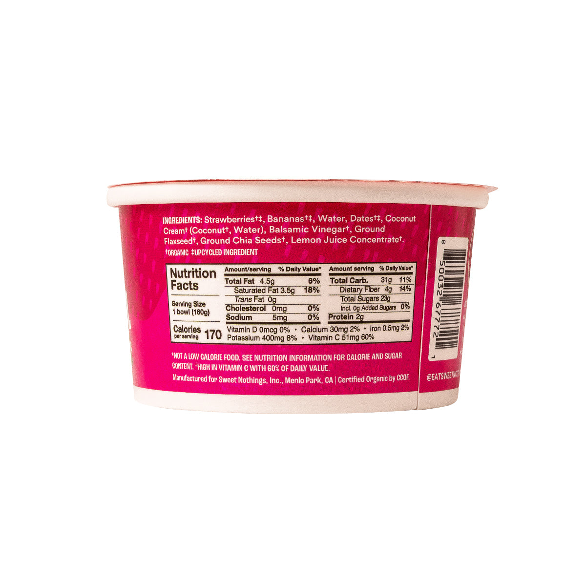 Introducing our Strawberry Smoothie Bowl – Classic, sweet, and endlessly crave-able. Sweet organic strawberries and bananas are elevated with dates, seeds, and a hint of balsamic vinegar that enhances the berry flavor in every spoonful. With an Antioxidant Boost and 60% of your daily Vitamin C, it’s a simple, satisfying choice for breakfast, snack time, or a better-for-you sweet treat. Free from added sugar, dairy, refined sweeteners, and anything artificial—just real, organic ingredients blended to perfection.